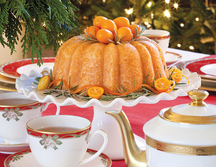 Garnished with kumquats and fresh rosemary, this Orange-Glazed Pound Cake is a fabulous Christmas dessert.