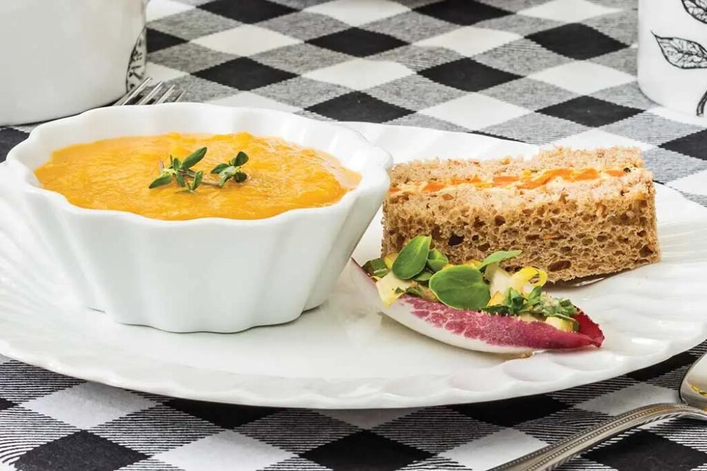 Using the leaves from a Belgian endive as vessels is a unique way to present a simple, yet satisfying, salad in a sophisticated fashion. These Harvest Pear & Endive Salads are pictured with our Roasted Carrot Tea Sandwiches and Acorn Squash Soup.