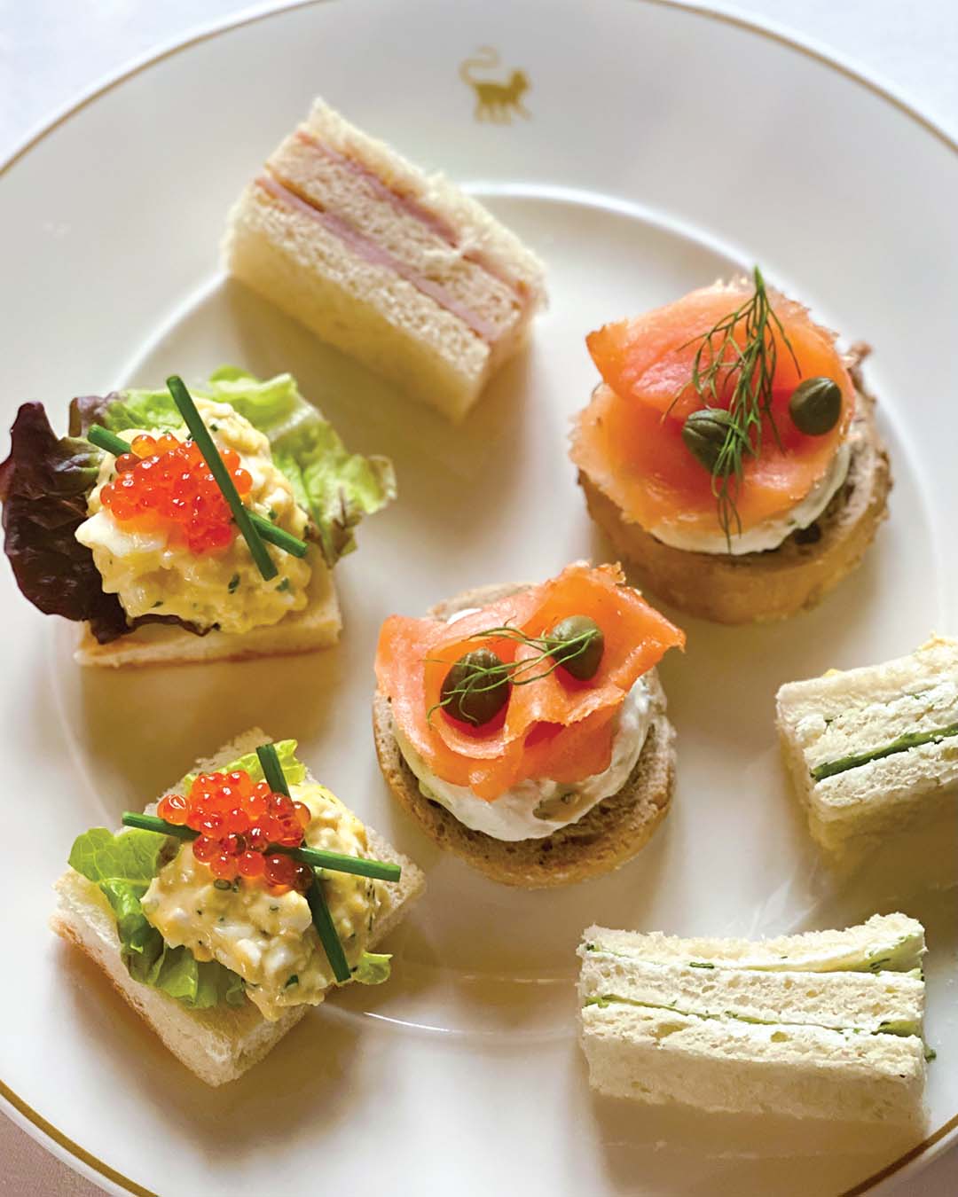 The beautifully presented sandwich course features creative takes on traditional flavors. Photograph Courtesy of Cashel Palace Hotel.