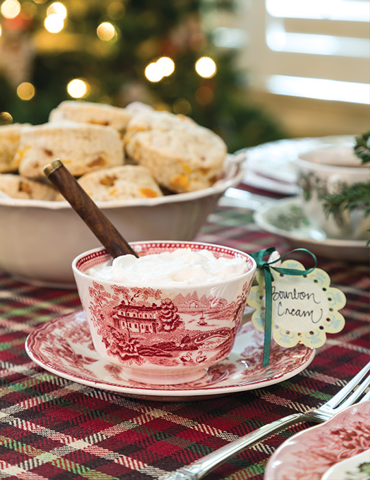 Begin your afternoon tea gathering with a cup of Simpson & Vail’s Darjeeling Ambootia Estate Premium Organic Black Tea and these delectable Apricot-Rosemary Scones with Bourbon Cream.