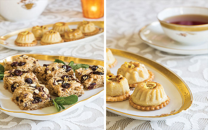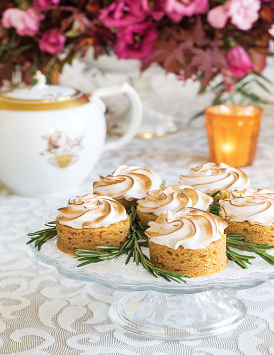 End your festive occasion on a sweet note with Simpson & Vail’s Special Orange Blend Tea and our delightful Ginger-Rooibos Crème Brûlée Tartlets, Almond, Cranberry & Chocolate Oat Squares, and Sweet Potato Cakes with Toasted Meringue.