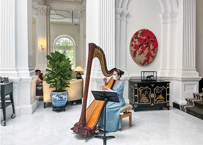 Once your purpose is clear, friendly staff will settle you into a cozy upholstered chair while a nearby harpist plays. You will likely spy other tourists along with well-heeled Raffles guests strolling through the lobby laden down with so many shopping-bagged purchases that they require the assistance of several trailing bellmen. No worries; the butler (all hotel guests are afforded such service) will undoubtedly help them sort it out.