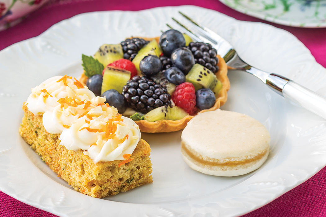 End your summertime soirée with a pot of Mark T. Wendell Tea Company’s Peach Black Tea paired with some of our tasty treats, including Coconut-Mango Macarons, Carrot-Zucchini Cakes, and Berry Cream Tartlets.
