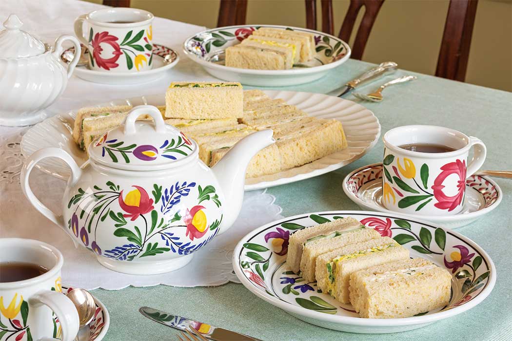 Begin your joyous event with a trio of tea sandwiches, including Savory Cheddar & Leek Tea Sandwiches, Egg & Cress Tea Sandwiches, and Mackerel Pâté & Cucumber Tea Sandwiches, paired with a teapot of Sessa Estate Assam.