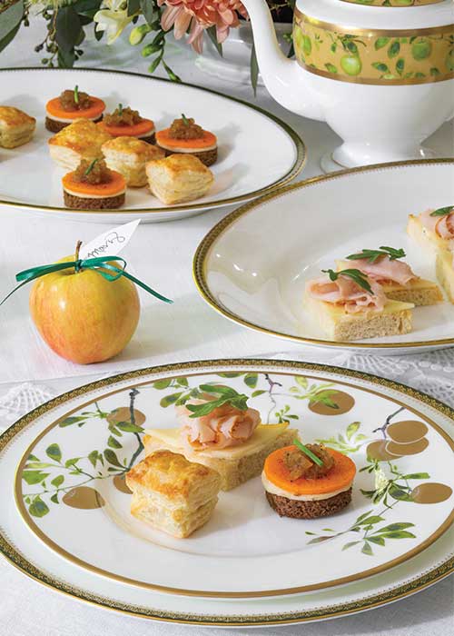 Pair a cup of Ceylon – Blackwood Estate Organic Black Tea with a selection of delectable, apple-filled savories, including Bacon, Apple & Brie Pastries, Turkey Toast Points, and Roasted Winter Squash & Apple Canapés.