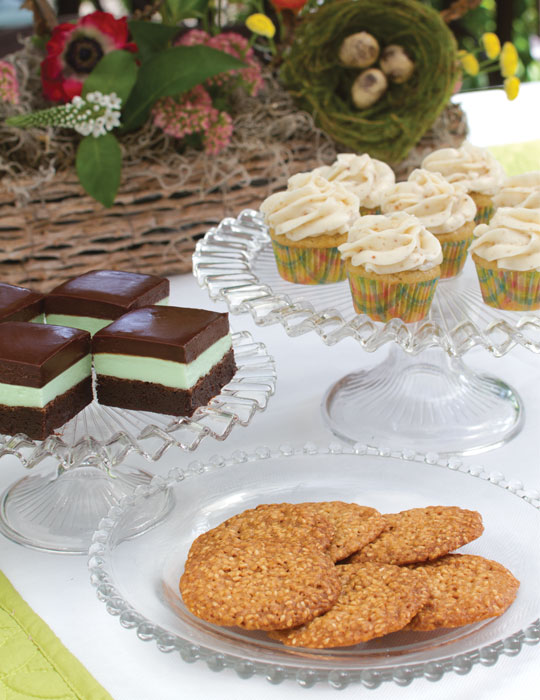 And for a final treat, enjoy a cup of Grace Tea Company’s Connoisseur Master Blend with Hummingbird Cupcakes, Benne Wafers, and Layered Mint Brownies.
