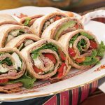 - Starting at short end of each flatbread, roll up evenly, firmly encasing ingredients and ending with seam side down. Using a sharp, serrated knife, cut roulade into 7 (¾-inch) slices, discarding ends. Serve slices immediately.