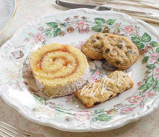 These British treats consist of dried fruit baked between two layers of dough, creating thin cookies that are enhanced with a drizzle of melted white chocolate.