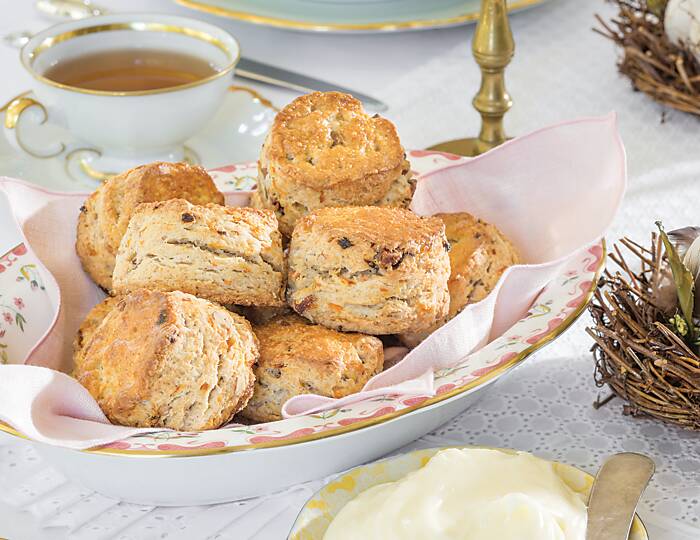 Enjoy the delicious combination of spices, carrots, raisins, and pecans as the classic springtime dessert is reimagined as a scone and served with a cream cheese spread, of course.