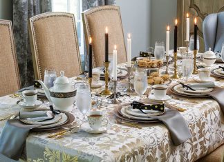 Welcome the Festival of Lights in good company at a charming blue-and-white table set for tea....
