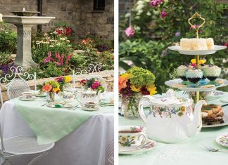 A garden filled with beautiful blooms makes a picture-perfect backdrop for a summertime tea...