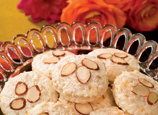 Dundee Biscuits, also known as Scottish oat cakes, dress up nicely when garnished with almonds.