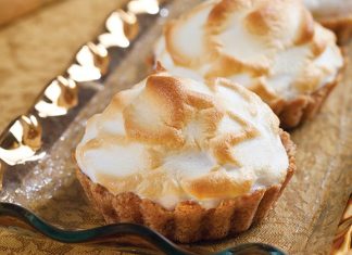 Pretty meringue-topped Banana-Cream Tarts are a delicious treat at tea time.