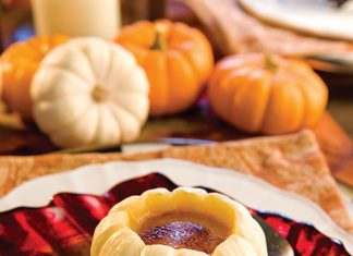 Savor the sweet taste of fall by enjoying mini pumpkin cheesecakes wrapped in delectable gingerbread crust.