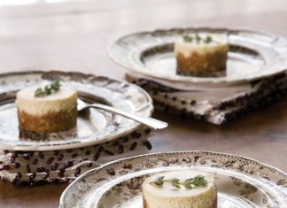 Creamy cheesecake bites, flavored with pear nectar, with graham cracker–granola crust.