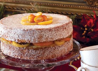 Let this traditional English Lemon Cake, layered with lemon curd and candied citrus fruit, become the star of your Christmas menu.