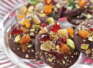 Chock full of candied cherries, dried fruit, and pistachios, Mendiants, also known as Stained-Glass Candy, are a Christmas treat.
