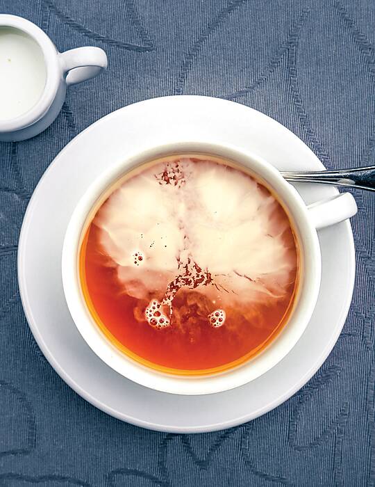 - Using the cream spoon, carefully drizzle cream down the inside edge of the cups into the tea so that it settles as a middle layer between the sugar and the tea.