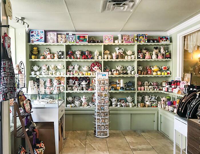Erika’s Tea Room’s gift shop is open Tuesday through Saturday from 11:00 a.m. to 5:00 p.m., and the tearoom is open Tuesday through Saturday from noon to 2:00 p.m. Reservations are required.