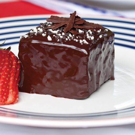- Place cake squares on a wire rack, and spoon warm Dark Chocolate Ganache over each square, letting ganache drip down sides. Smooth ganache with an offset spatula to cover cake squares, if necessary.