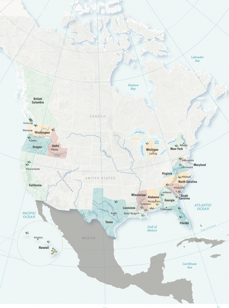 Tea reached America with the Dutch in the 17th century, and when Peter Stuyvesant, governor of New Amsterdam, surrendered Dutch settlements to the British in 1664, the new residents of renamed New York found tea well established amongst the town’s upper classes.After the quarrel with Britain over taxes that led to the Boston Tea Party in 1773, Americans vowed to give up tea, but instead, they established their own trade with China. On the 22nd of February 1784, The Empress of China, the first American vessel to be directly involved in that trade, set sail from New York for Canton. And with a burgeoning demand for green tea, merchants also began importing large amounts from Japan. French botanist André Michaux planted North America’s first Chinese tea seeds in South Carolina in 1795, and in the 1840s, Junius Smith planted bushes in South Carolina. In the late 1850s, the United States government hired Scottish botanist Robert Fortune to acquire more seed from China, and in 1858 and 1859, he dispatched seed from Hong Kong to the U.S.A.