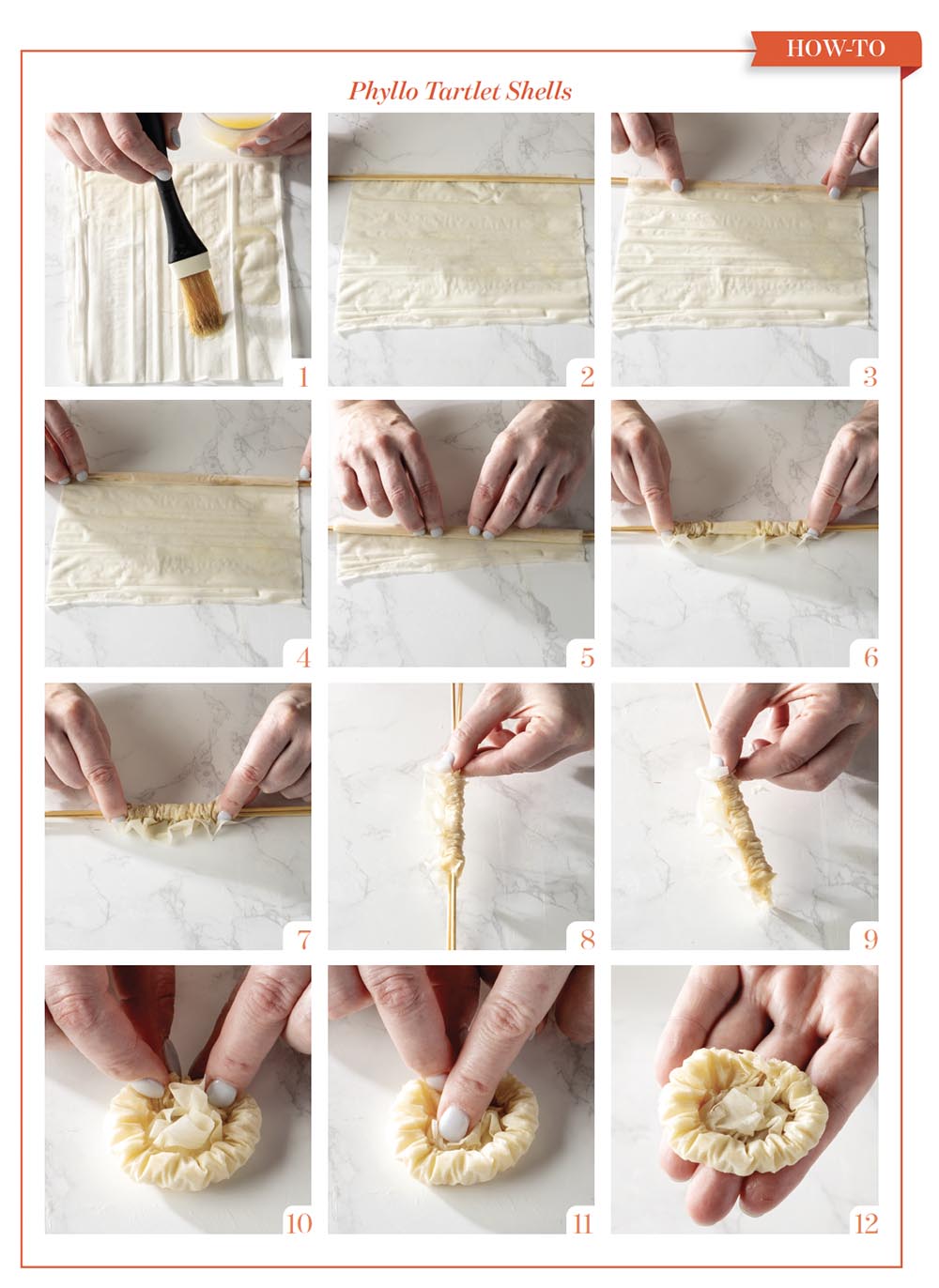 - Bake until phyllo tartlet shells are lightly golden brown, approximately 7 minutes.