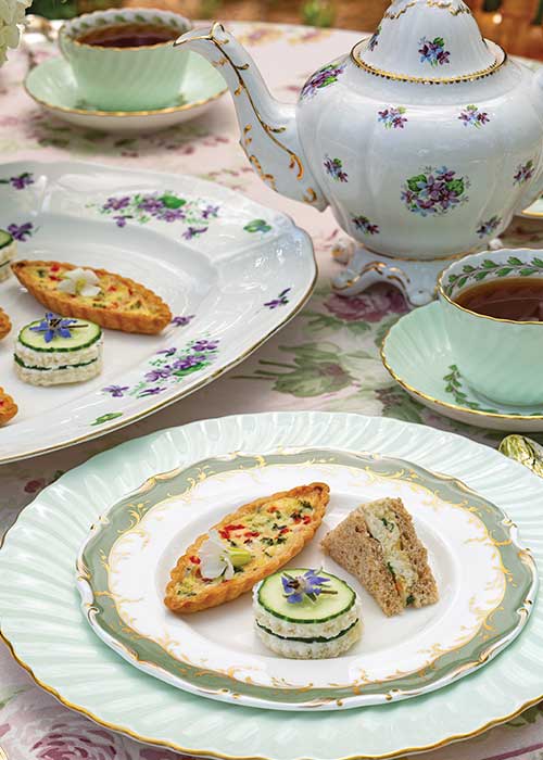 Serve guests a delectable selection of savories, including our White Cheddar–Broccoli Quiches, Tarragon-Cucumber Canapés, and Honey Mustard–Chicken Salad Tea Sandwiches accompanied by Meizhan Green Bud Early Spring.