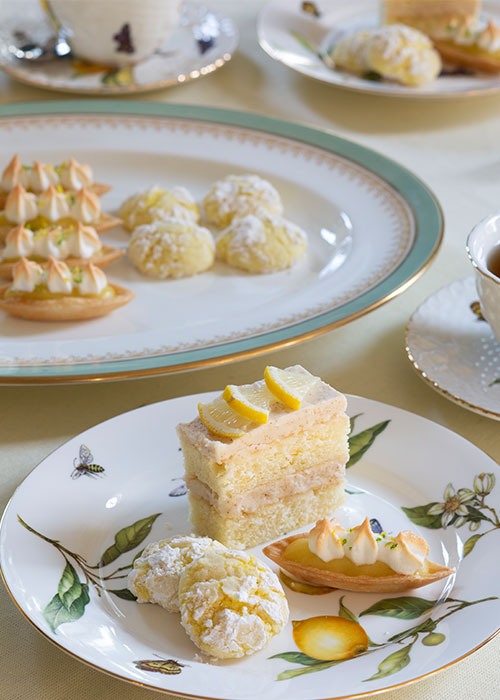 Savor your joyous teatime by ending the afternoon on a sweet note with Driftwood Tea Company’s Garden Party Tea and our delightfully charming Meyer Lemon–Lime Tartlets, Browned Butter–Lemon Cake Stacks, and Lemon Crinkle Cookies.