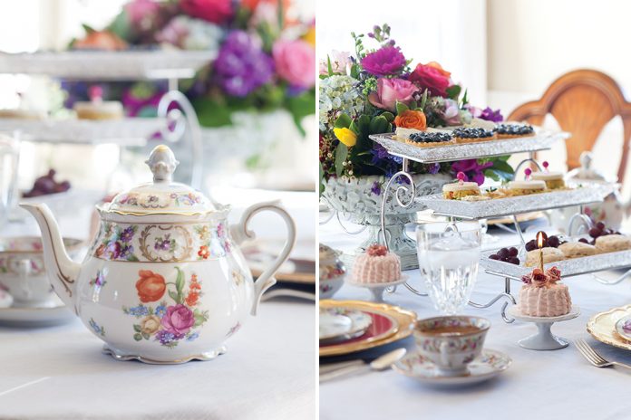Create a glorious summer teatime fête for a friend or loved one’s special day with a floral table setting and our decadent tea fare.