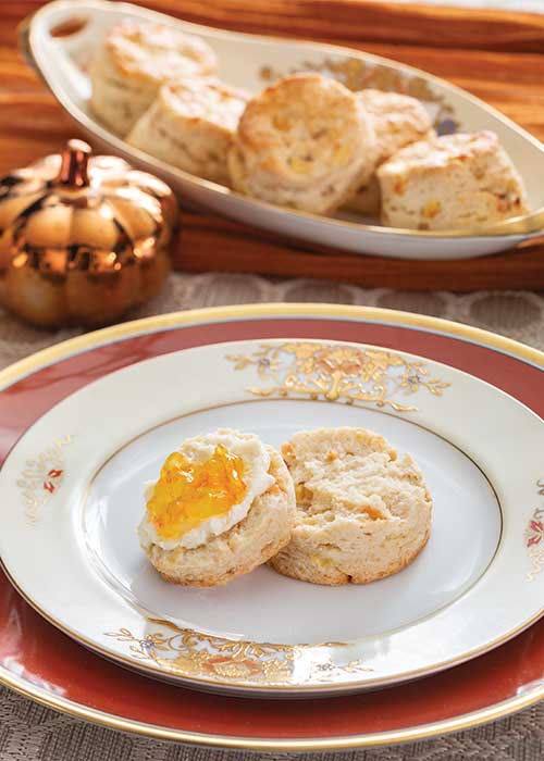 Begin your autumnal teatime with a warming pot of The Tea Shoppe’s Bonfire Tisane, paired with Apple & Toffee Scones.