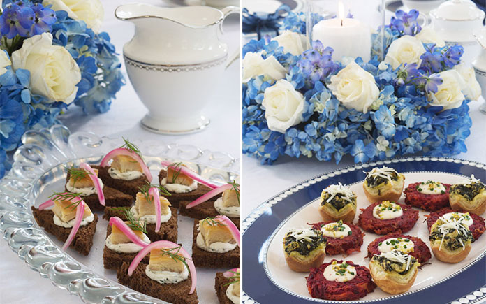 Next, enjoy Golden Treasure Black Tea paired with our Beet Latkes with Horseradish Crème Fraîche, Spinach-Artichoke Tartlets, and Smoked Trout Toasts with Pickled Red Onion.