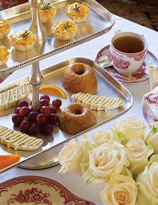 Bring your joyous occasion to a close with a pot of North Point Darjeeling Black Tea from Trail Lodge Tea and our Orange Marmalade-Mascarpone Tartlets, Lemon-White Chocolate Biscotti, and Butter Rum Cakes.