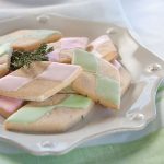 - On a lightly floured surface, roll dough to ¼-inch thickness. Using a 2-inch diamond cutter, cut as many cookies as possible. Place cookies 1 inch apart on prepared baking sheets.