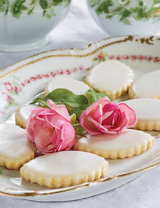 Beautiful and delicate Iced Almond Petal Cookies make an elegant dessert to serve for the sweets course of afternoon tea.