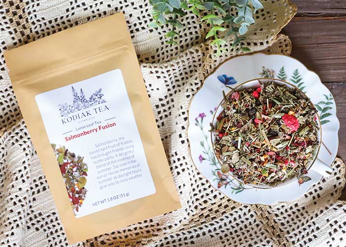 Originally selling exclusively herbal blends, the tea company responded to rising customer demand for caffeinated drinks by expanding their offerings to include unique black and green tea blends as well. Many bestsellers are available year-round, including popular selections like the Monashka Sunrise blend, brimming with red raspberry leaf, hibiscus, lemon verbena, and green tea for a light brew that conjures visions of waking up and enjoying the gentle sunrays and crisp morning air in Monashka Bay. The company also offers seasonal blends perfect for enjoying during the cold winter season, like Currier and Ives Christmas, which is filled with warming spices, organic peppermint, ginger, and apple pieces. Heather explains that simply selling tea is not her family’s end goal; they place a large emphasis on developing relationships and spreading the spirit of togetherness by embracing community through shared experiences, and tea is the perfect place to start. “[Kodiak] remains relatively small and is filled with warm, caring people. We want our teas to reflect this warmth and welcome you into our lives.”