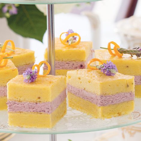 This Lavender-Orange cake with a Blackberry Cream filling is a delectable treat.