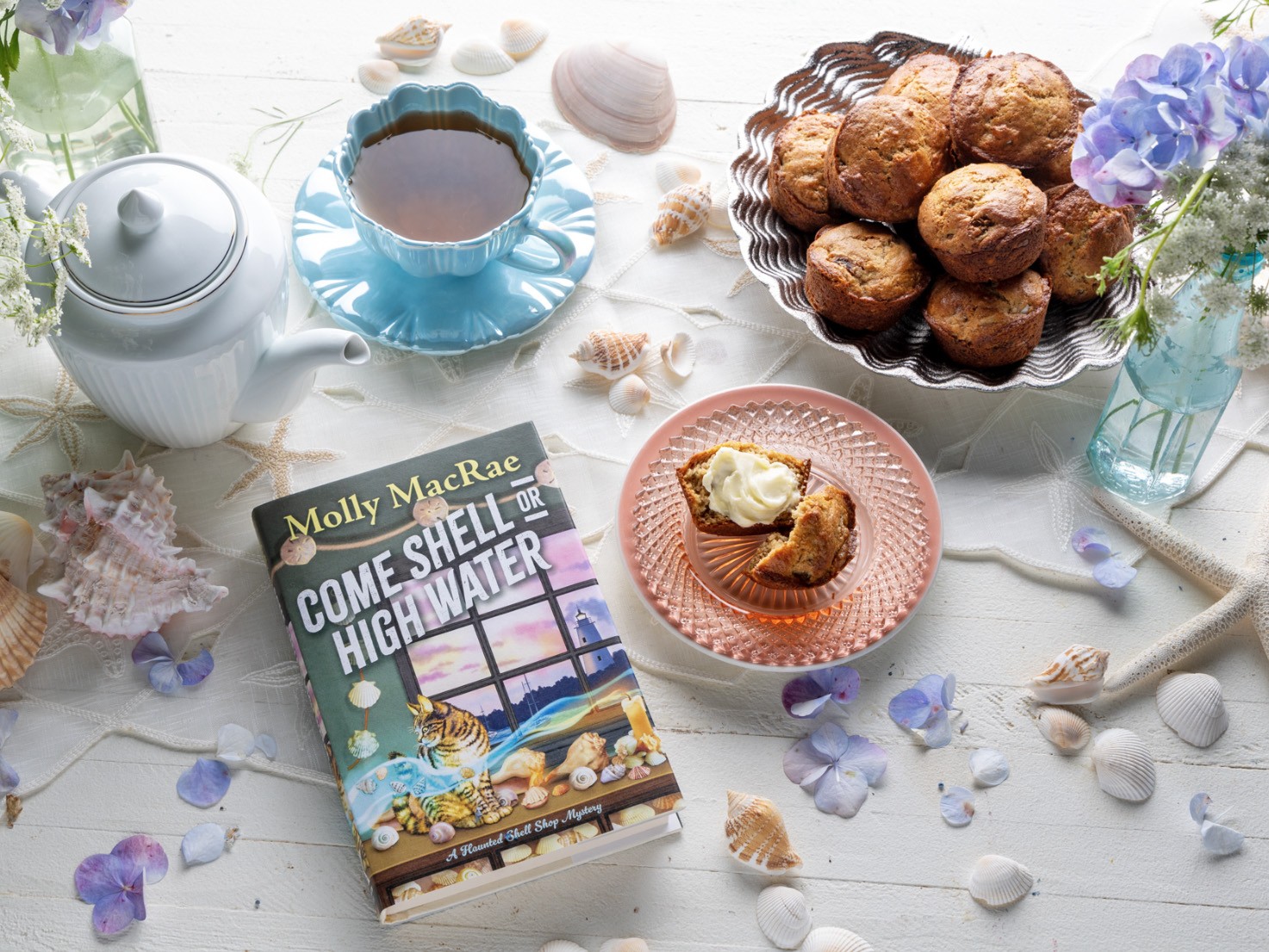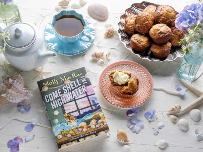 In Come Shell or High Water, amateur sleuth Maureen Nash’s neighbor, Burt Weaver, took up daily muffin baking during the pandemic. He’s continued the practice, calling it his morning muffin meditation. “The Fig, Walnut & Spice Muffins recipe is the first recipe I’ve come up with on my own,” he says. “It makes 18 muffins—sometimes 17, if I’m heavy-handed in filling the muffin cups. When my sister Glady asked if I was ever going to fix the recipe so that it makes a standard dozen, I asked who she was kidding. Seventeen or 18 muffins is better than a dozen or a baker’s dozen any day. This recipe makes a Burt’s dozen.”