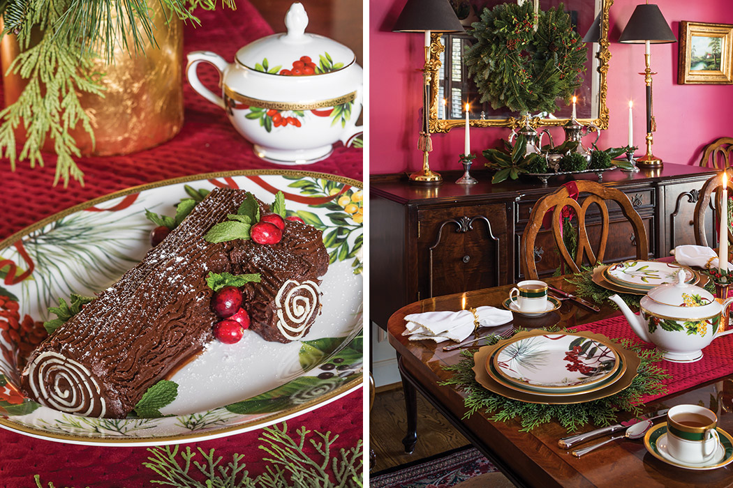 Herald the holidays with afternoon tea in a festive setting decorated with a lush assortment of greenery. An eye-catching selection of delectable fare, including a Yule log cake, will make this a most memorable teatime.