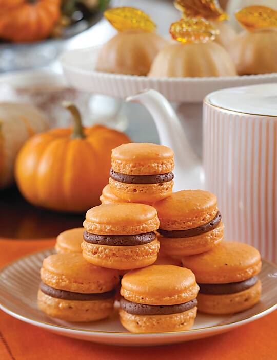 Serve decadent Orange Macarons with Dark Chocolate Buttercream for a festive fall dessert that is sure to please.