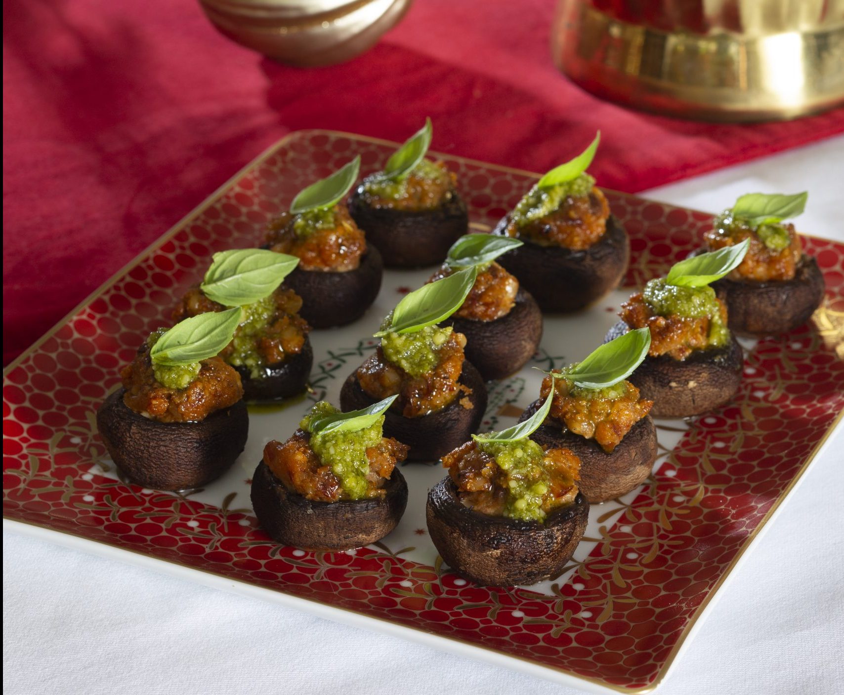 Pine Nut & Sundried Tomato–Stuffed Mushrooms