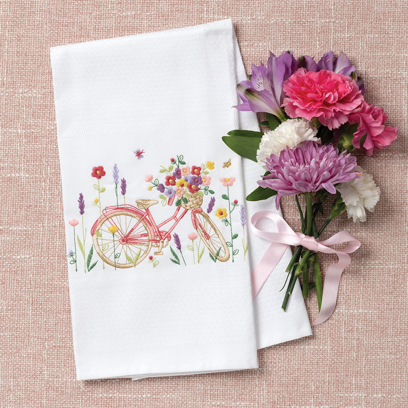 Mierco Linens Embroidered Tea Towel – Pink Bicycle