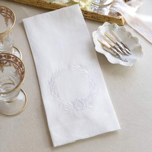 Featuring a meticulously embroidered laurel wreath and crafted exclusively for Victoria by Arte Italica, our beautiful hand towels impart genteel elegance to your kitchen or powder room. Choose between white-on-white or white-on-flax to coordinate with décor. Crafted from premium European linen, these refined hand towels are designed for all who love lasting style and small touches of luxury.