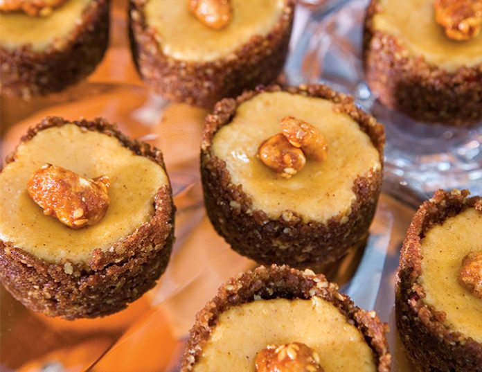 Savor the sweet taste of fall by enjoying mini pumpkin cheesecakes wrapped in delectable gingerbread crust.