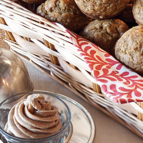 Baked with a myriad of spices and crystallized ginger, and served with sweet Cinnamon-Honey Butter, these Pumpkin Muffins set the tone for what is yet to come.