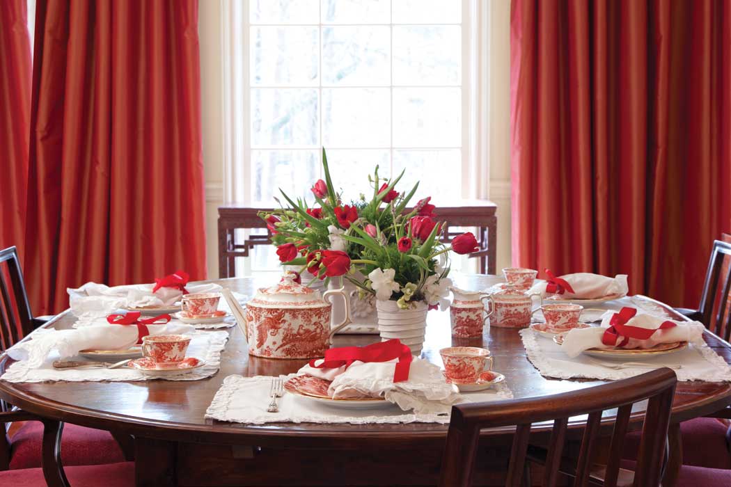 Valentine’s Day has become a celebration of love and happiness for all those we care for—not just sweethearts, but also friends, sisters, mothers, and co-workers. Show affection to your valentines with an exquisite tea luncheon served on classic red-and-white china embellished with gold accents.