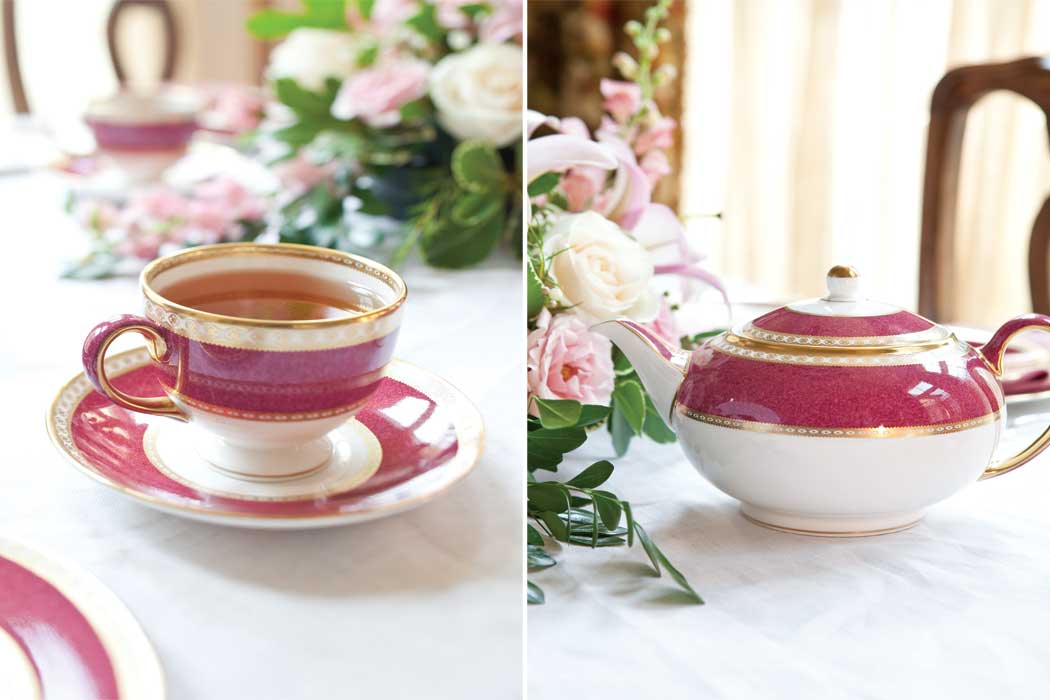 The finest element of a tea party is a soothing cup of tea, and what better way to serve it in than in a Wedgwood Ulander Ruby pink and gold teacup, a pattern brimming with elegance and romance.