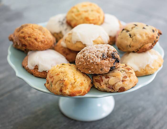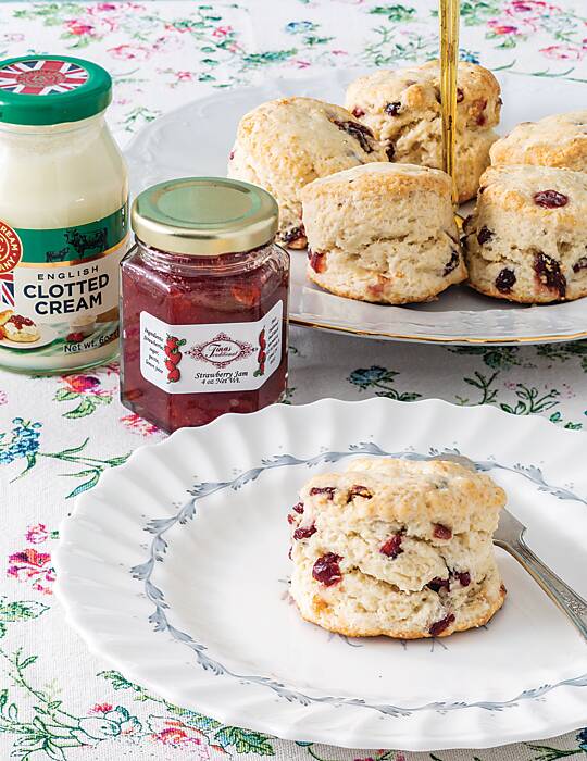Every “Chief Scone Officer,” as many owners facetiously title themselves, has meticulously mastered the art of creating an impeccable scone by experimentation, attention to detail, and plenty of hours in the kitchen. The goal to forming the perfect scone is a careful balance of a crumbly (English-style) or slightly crunchy (American) outside with a tender, moist inside. “First and foremost, we do everything with wholesome ingredients and no preservatives,” remarks Katie Poma of The Secret Garden Tea Café. “We do everything from scratch with no shortcuts, and that’s the most important thing.” Some, like Highland Gourmet Scones, weigh each scone by hand, rather than rolling out the dough, to add to the artisanal quality of each unique bake. Others are more precise and formulaic with their scone-making, such as Meahgan and Kevin Borowsky of The Whistling Kettle, who try to “create the scones to be easily reheated for a ‘fresh-out-of-the-oven’ experience.” What is evident across the industry is the dedication to consistent baking methods, commitment to excellence, and the apparent love for producing the sophisticated baked good. “You have to bite the bullet for quality,” proclaims Hala Yassine of Seven Sisters Scones. “Everything we work with … butter, cream, etc., is a commodity and very expensive. You can’t compromise on the ingredients to take a shortcut financially.”
