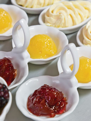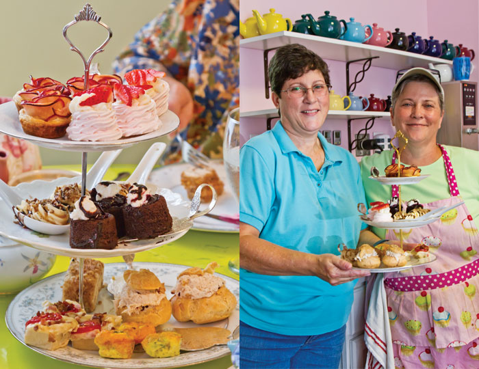 Paula and Amy offer a Cream Tea (a pot of tea and a scone) for $5.95 and a Petite Tea that adds fruit, a tea sandwich, and a bite-sized dessert for $12.95. The more substantial Afternoon Tea for $20.95 includes an assortment of tea sandwiches, savories, and desserts. “Everything we can make from scratch, we do,” Amy points out. The Petite Tea and the Afternoon Tea come with a bottomless pot of tea.