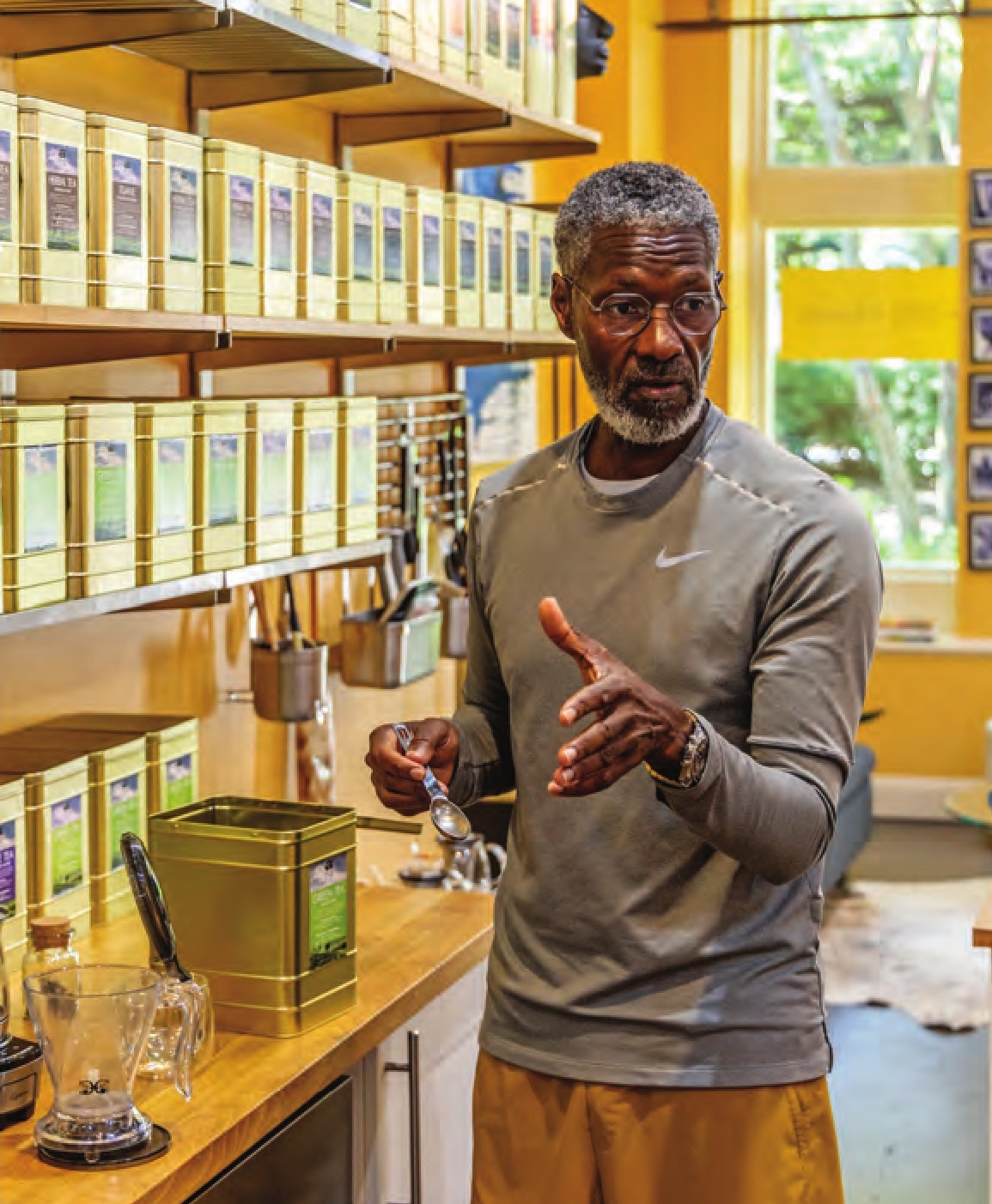 Inspired at a young age by watching his mother steep sun tea, Wayne Ashford says that a love of tea and its numerous health benefits has been a major catalyst for his success as a business owner. With more than 30 years of experience in the tea industry, including over 20 years running his own tea shop (Tea’s Me Café in Indianapolis, Indiana), Wayne sought a change of scenery and decided to move to Savannah, Georgia, where he opened Ashford Tea Company in 2018. This multifaceted business offers tea lovers a variety of tea-based experiences, including a shop, tasting room, studio, and lounge area.