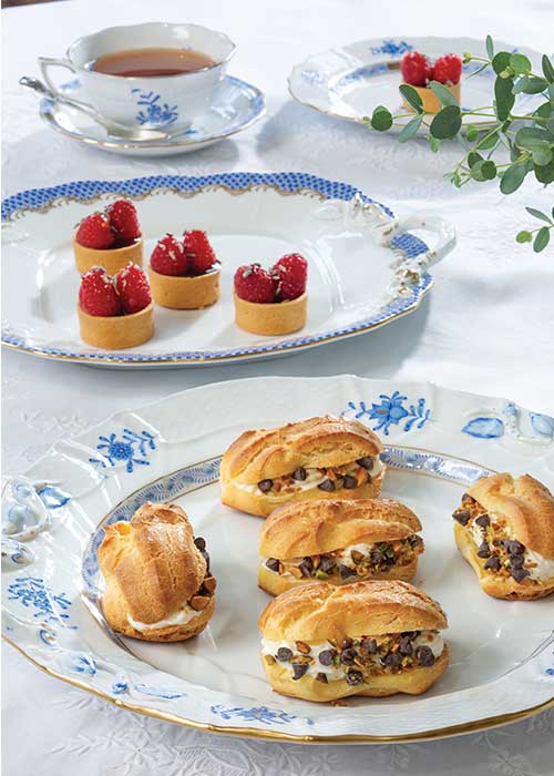 End your afternoon tea on a sweet note with scrumptious sweets, including Raspberry-Lavender Tartlets, Whipped Ricotta Éclairs, and our eye-catching Lemon-Blueberry Layer Cake. A bright, floral oolong, such as Driftwood Tea Company’s Royal Empress pairs wonderfully with this sweets course.